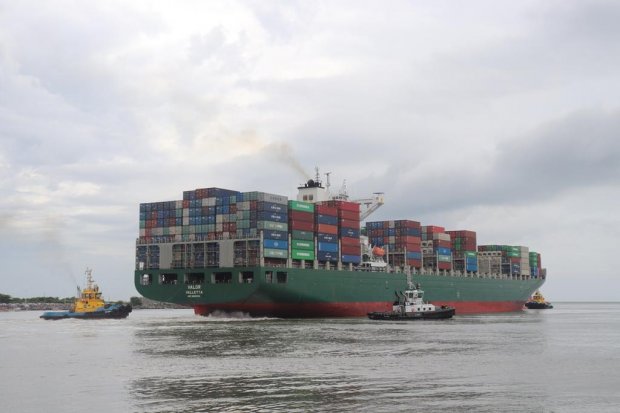 O Armador Evergreen com seu Navio “Valor” (Bandeira de Malta) desatracou às 10h da manhã, foi rebocado e seguiu de ré até a área da bacia, deu o giro de 180º consolidando assim, a oportunidade de em breve, atender navios maiores comumente chamados de Mega Ships.